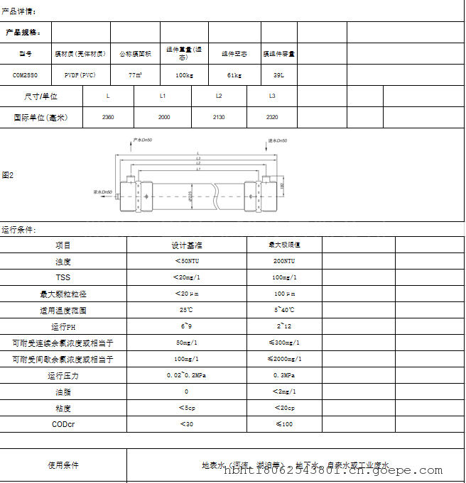 产品介绍:COM2880超滤膜元件,采用聚偏氟乙烯(PVDF)材料,有良好的亲水性,抗污染性能强;采用不易堵塞的外压式结构,具有更大的过滤面积,使清洗更简便、彻底。