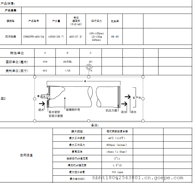 反渗透膜脱盐率可达99.65%,可以保证*佳的产水水质;耐碱清洗pH值为1-12(清洗温度不大于25℃时,可达1-13),保证在发生有机污染时,可以*大限度采用碱溶液恢复系统的性能;采用高端技术,降低系统运行的压力损失,从而减少系统的清洗频率,并使膜元件内部可能积存的污染物在清洗时容易被清洗干净.