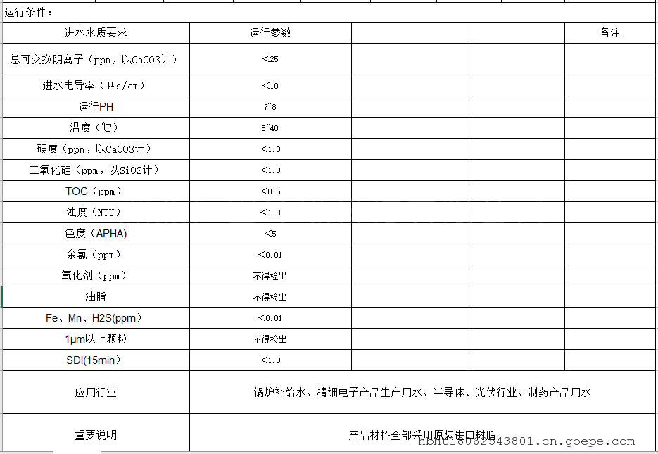 产品介绍:EDI模块工作原理如下:EDI模块中将一定数量的EDI单元间用格板隔开,形成浓水室和淡水室。又在单元组两端设置阴/阳电极。在直流电的推动下,通过淡水室水流中的阴阳离子分别穿过阴阳离子交换膜进入到浓水室而在淡水室中去除。而通过浓水室的水将离子带出系统,成为浓水。 -